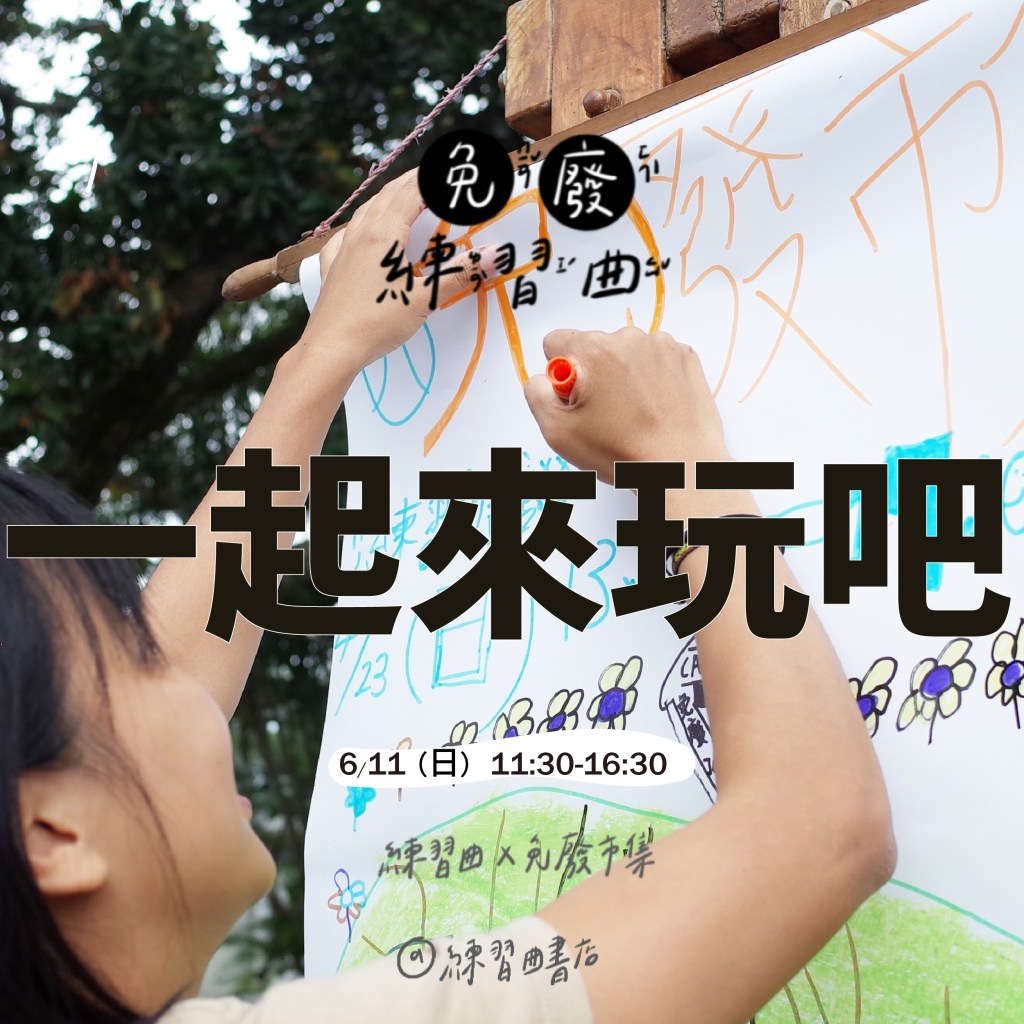 最新活動 木育山海永續生活展 永續 親子 山海生活 活動日期 即日起至 2024.06 活動地點 新晨共學基地 在山海之間,一起練習永續吧!我們攜手國產材理念,帶你認識島嶼林業的前世今生,用五感體驗木材的特性,也看到各式各樣的工具,讓木材變成生活物品的製作過程,等你來解鎖⋯⋯ 活動介紹 瞭解更多 過往活動 假日學校|尋找吧!我的新晨冒險魂 社區陪伴 多元學習 太魯閣族文化 2024.1.24-2024.1.28 活動日期 新晨共學基地 活動地點 練習曲在2024年寒假第一次辦理了五天的假日學校 #冬令營。在這趟旅程裡,我們將與你一起尋找太魯閣音樂裡的秘密,一起到部落裡尋找土地的寶藏!小小冒險家們準備好啟程吧~ 活動介紹 瞭解更多 免廢市集|一月場 免廢 社區交流 ㄐㄧㄢˇ單生活 2024.1.20 活動日期 練習曲書店 活動地點 2024年,你寫下了什麼樣的願望清單呢?今年的第一場免廢市集,邀請你一起以ㄐㄧㄢˇ出發,減掉多餘的浪費、揀選需要的物品,在挑挑撿撿的過程中,剪裁出自己喜愛的生活模樣。 活動介紹 瞭解更多 1×N的山海行動|青年聚聚X免廢市集 免廢 永續 獨活 2023.11.11 活動日期 練習曲書店 活動地點 11/11這特別的一天,來場結合 #山海、#免廢、#獨活 三種元素,從一個人到一群人的「1XN的山海行動」,以多項的力行選項,組合成屬於山海間的新生活提案,打造你生活中的N吧! 活動介紹 瞭解更多 免廢市集|九月場 免廢 永續 傷心 2023.09.23 活動日期 練習曲書店 活動地點 在必要的秋天,邀請你帶著免廢心意,一起傷心!你可以成為攤主,攜帶讓你感到傷心的物品,讓傷心之物輾轉到另一個人的手上,重獲新生;或者逛逛傷心攤位,帶走無形的有形的免廢心意,讓傷心在這個漫長的下午,找到釋放的出口。 活動介紹 瞭解更多 免廢市集|六月場 免廢 永續 玩樂 2023.06.11 活動日期 練習曲書店 活動地點 你的不要,是我的需要;你的發現,是我的光線。這裡有等待主人的各種物品們,以及棒球九宮格、國際化飲品、生命故事交換、店長選書等攤位,也歡迎一起玩桌遊、來瞎聊! 活動介紹 瞭解更多 免廢市集|四月場 免廢 永續 美食 2023.04.23 活動日期 練習曲書店 活動地點 來和練習曲一起練習免廢吧!我們有免廢物品、免廢書籍可帶走,另有集點換禮、許下心願的小活動唷! 活動介紹 瞭解更多